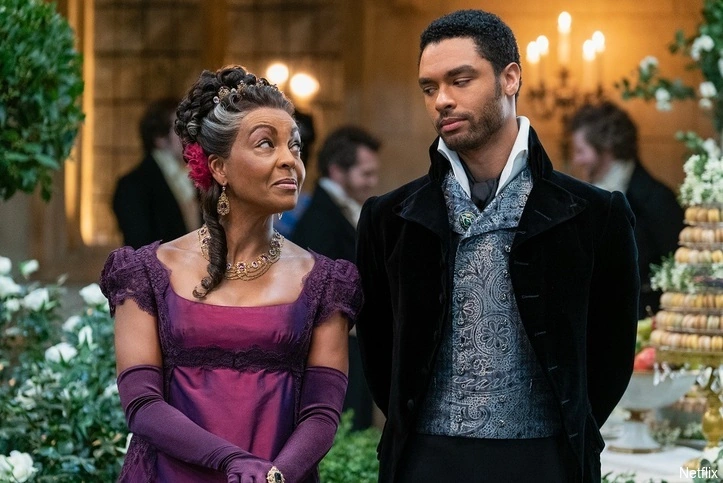 It's fantasy and eye candy of the highest order, with impossibly beautiful and sexy and famously diverse cast members, all outfitted in lovelier-than-life, Empire costumes that wouldn't look out of place on a runway, set against the sumptuous backdrop of British Regency-era elegant, lofty neoclassical architecture and sets with sweeping staircases, rooms where pastel silk walls match light-as-air upholstered furnishings and decadent carpets, all under glittering chandeliers.